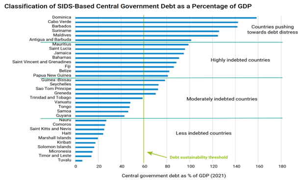 Moreover, this vulnerability to climate change is exacerbated by challenging financial conditions in many of these nations. The financial indicators in more than 70% of the SIDS show impending or deepening debt crises. Seven countries are already nearing “debt distress,” with debt-to-GDP ratios of more than 100% – putting them on the verge of being unable to fulfill their financial obligations. As a result, many small island nations are unable to make the investments in capacity-building, adaptation, and resilience that are necessary to protect their people and economies in an uncertain future.